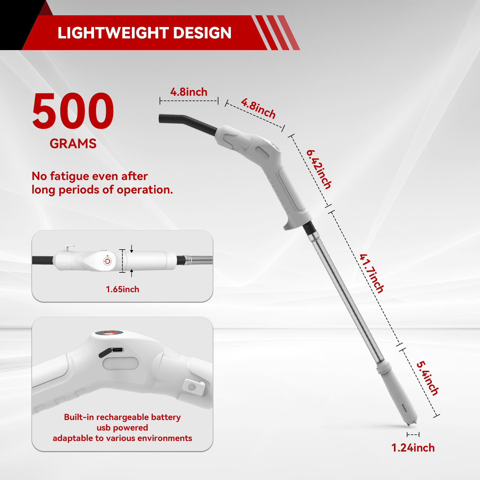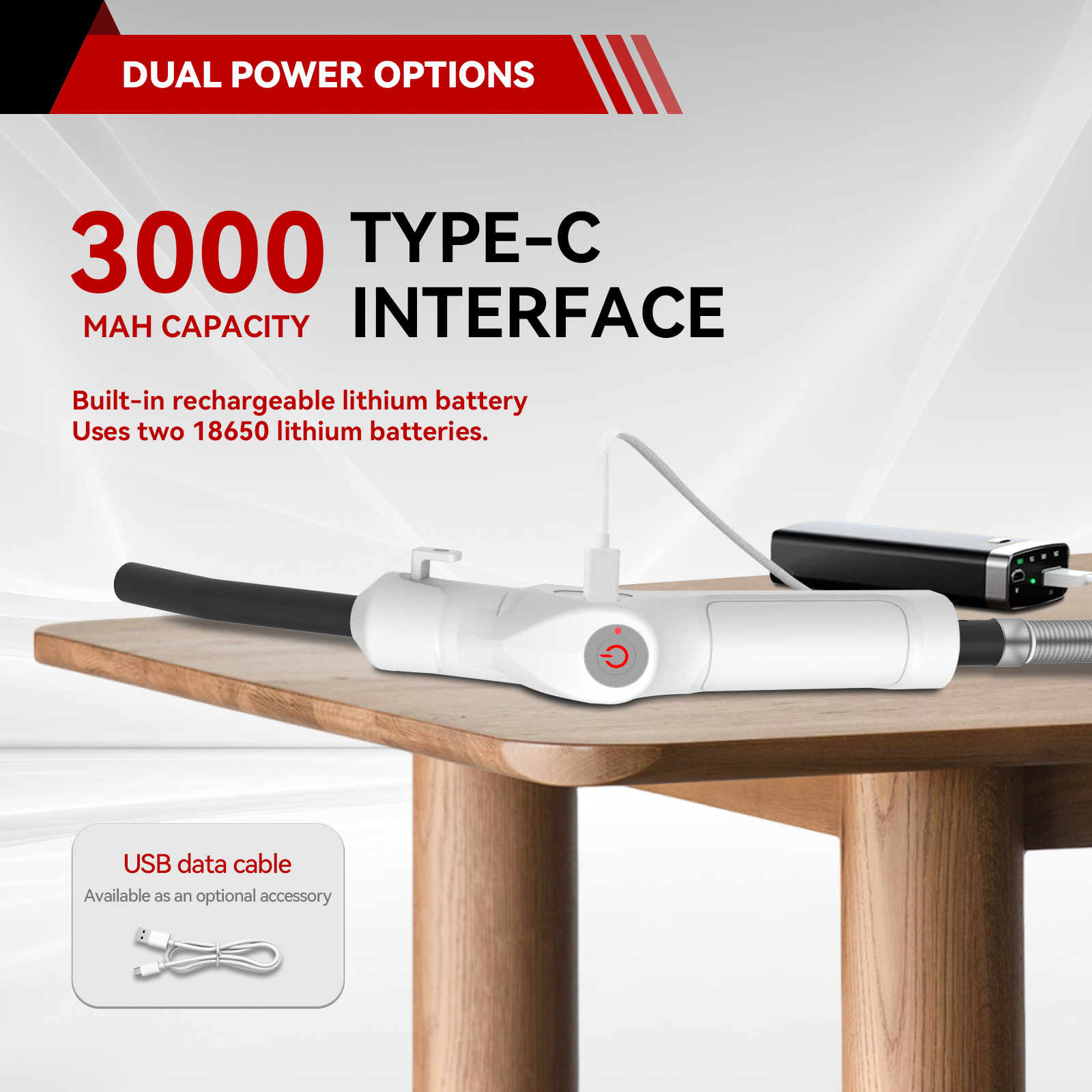 - Power: Built-in rechargeable lithium battery or a USB Type-C connection